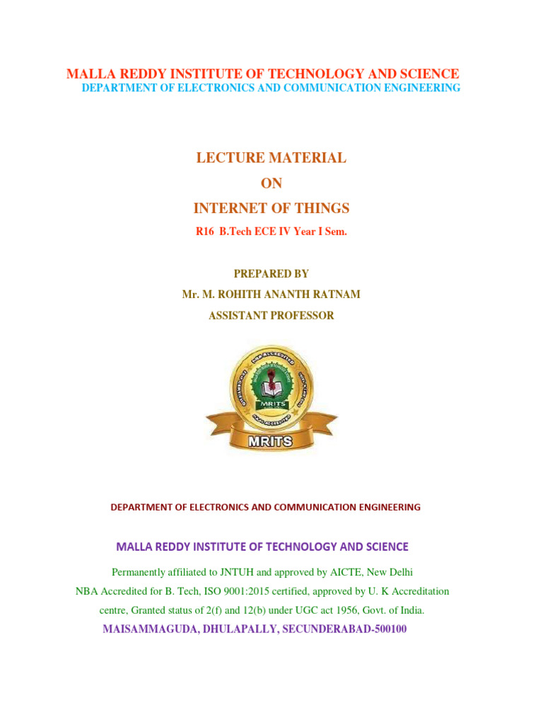 Internet of Things Lecture Material (B.tech ECE IV-I)