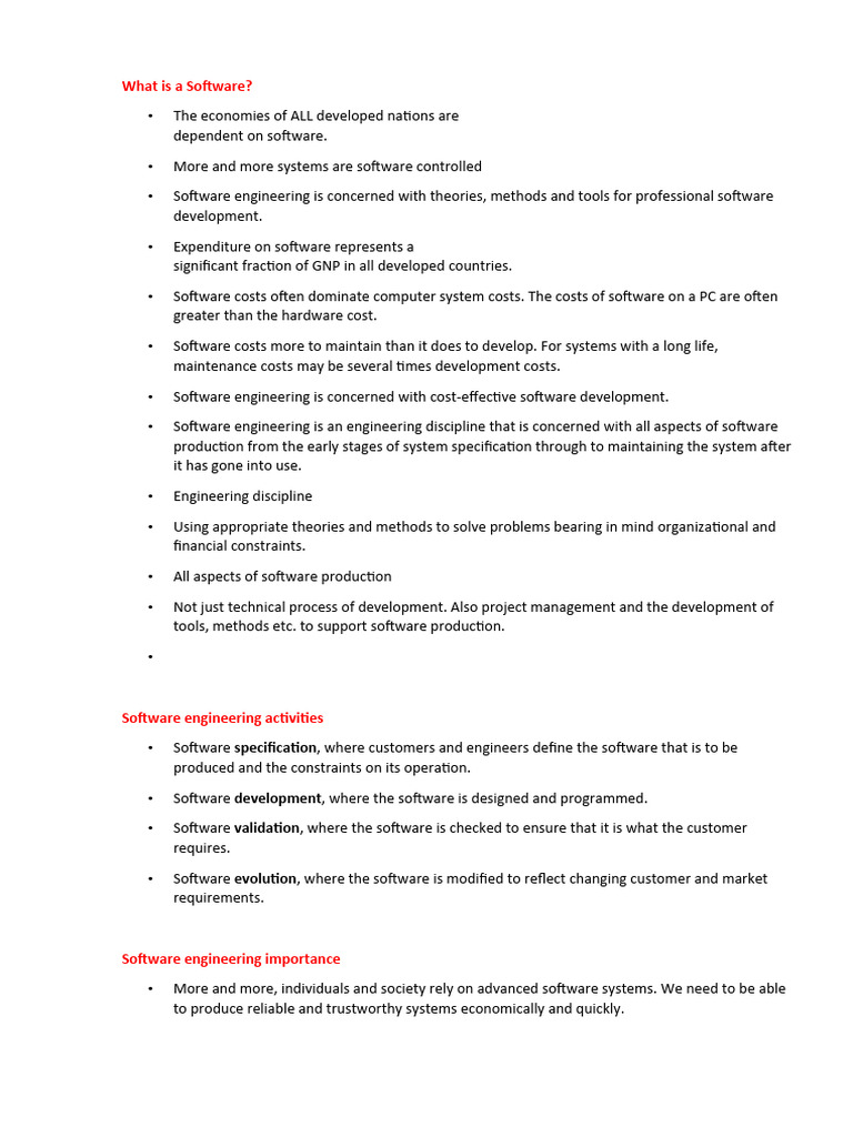 • It is usually cheaper, in the long run, to use software engineering methods and techniques for