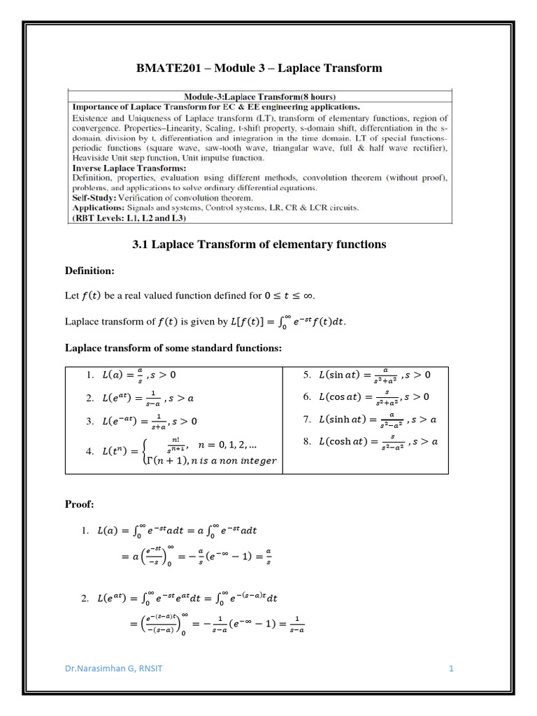 𝐿[𝑓(𝑡)] = ∫0 𝑒 −𝑠𝑡 𝑓(𝑡) 𝑑𝑡