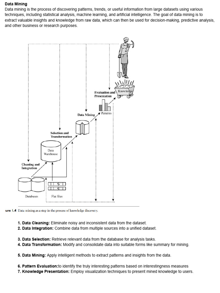 Data mining is the process of discovering patterns, trends, or useful information from large datasets using various