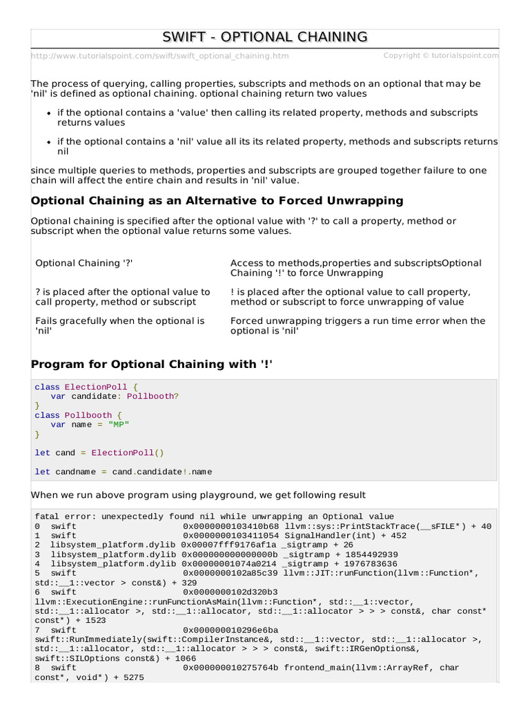 http://www.tutorialspoint.com/swift/swift_optional_chaining.htm Copyright © tutorialspoint.com