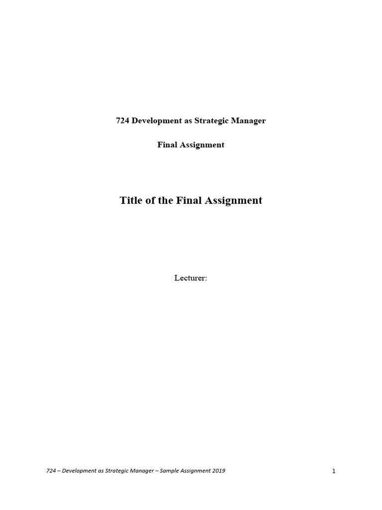 724 – Development as Strategic Manager – Sample Assignment 2019 27