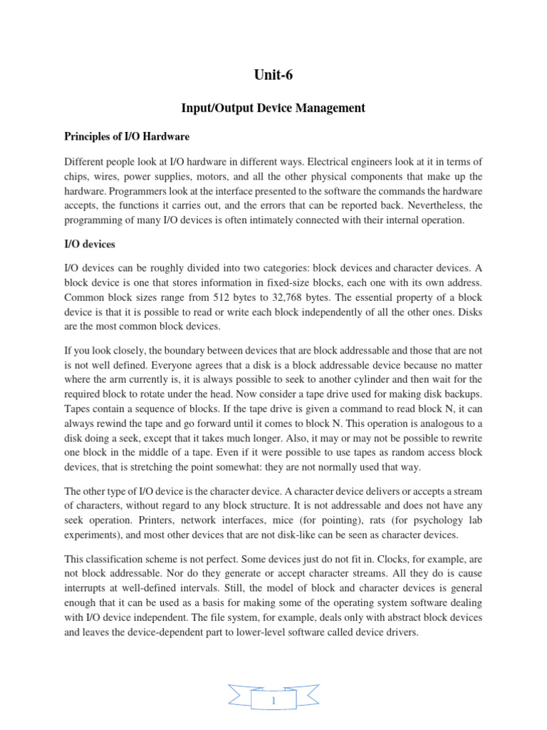 I/O devices can be roughly divided into two categories: block devices and character devices. A