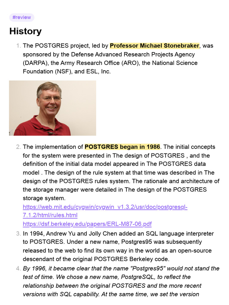 1. The POSTGRES project, led by Professor Michael Stonebraker, was