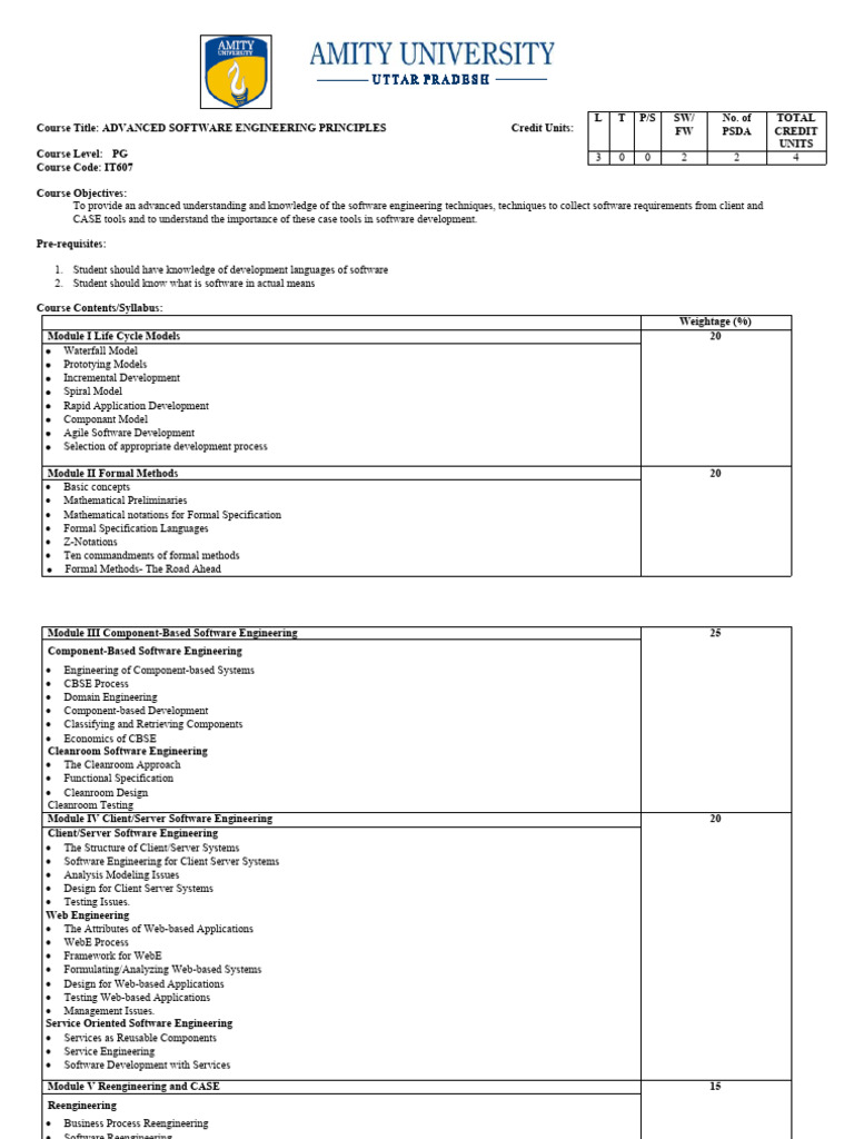 Course Title: ADVANCED SOFTWARE ENGINEERING PRINCIPLES Credit Units: FW PSDA CREDIT