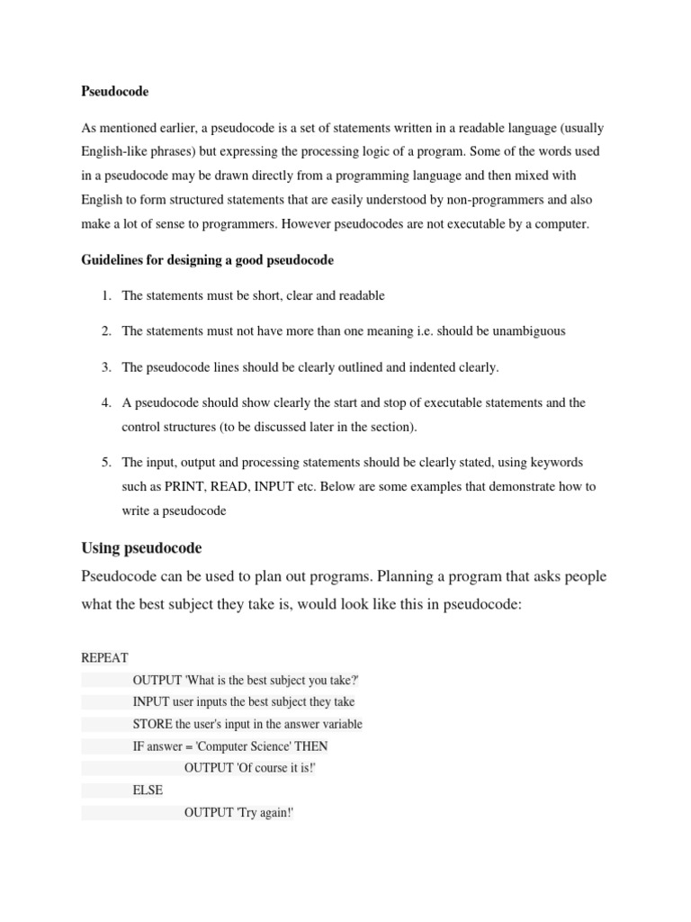 Guidelines for designing a good pseudocode