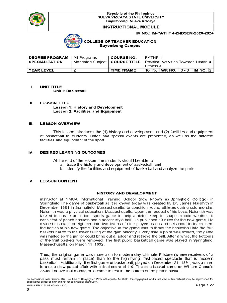 b. identify the facilities and equipment of basketball and analyze the parts.