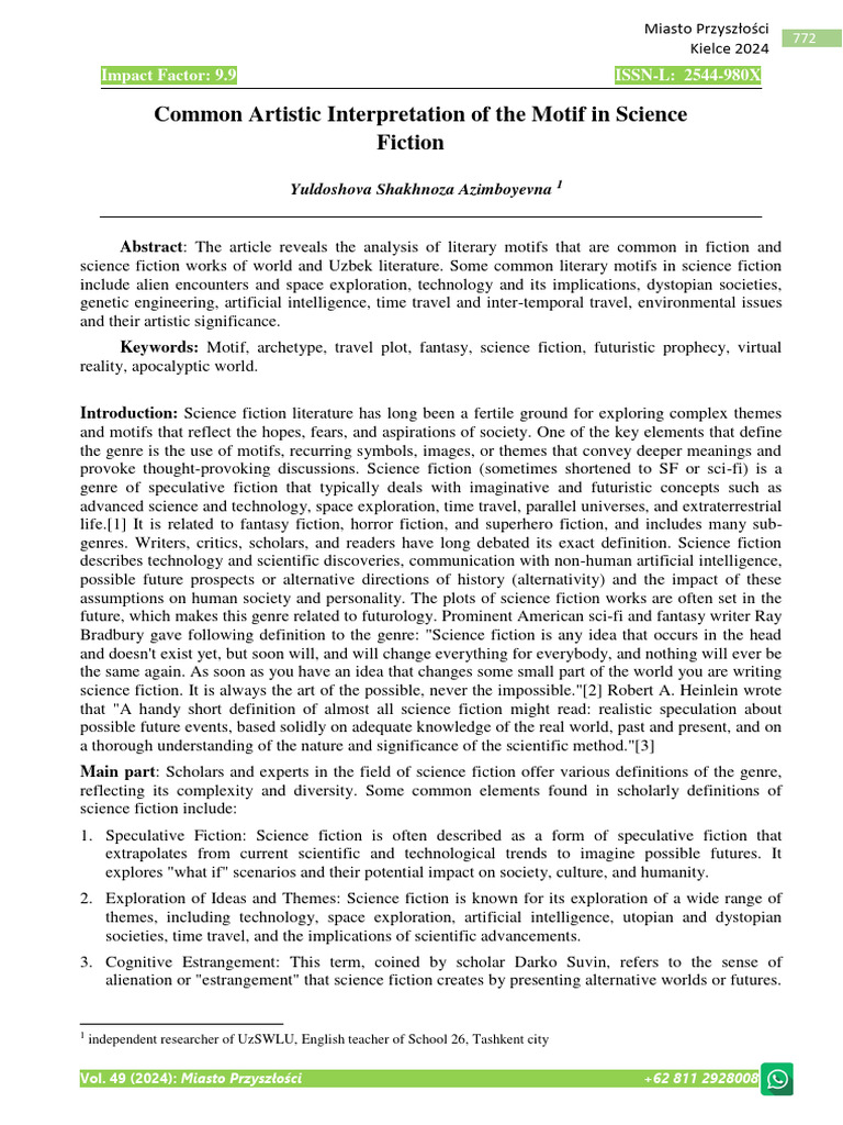 science fiction works of world and Uzbek literature. Some common literary motifs in science fiction