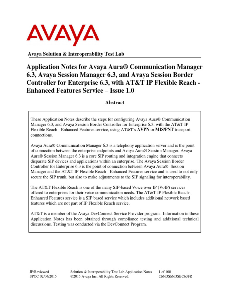 Aura® Session Manager 6.3, and the Avaya Session Border Controller for Enterprise (Avaya