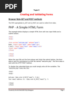 HTML Form It displays an HTML form with fields for name, email, password, and a submit button. Error messages