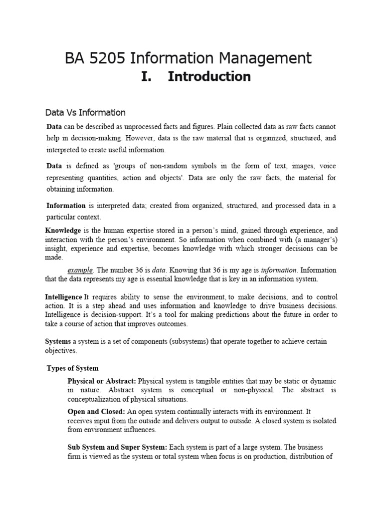 help in decision-making. However, data is the raw material that is organized, structured, and
