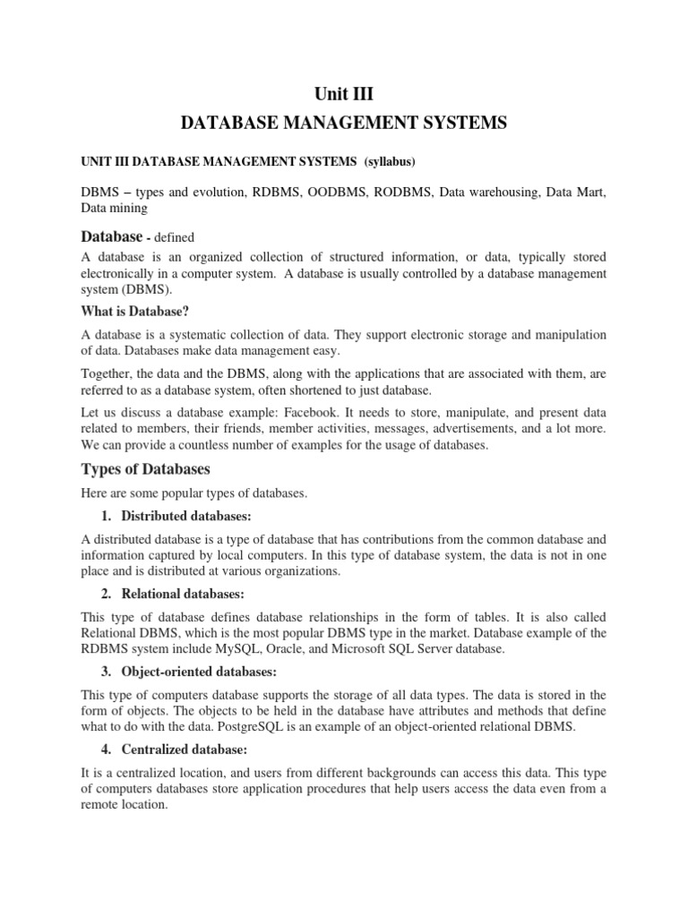 UNIT III DATABASE MANAGEMENT SYSTEMS (syllabus)