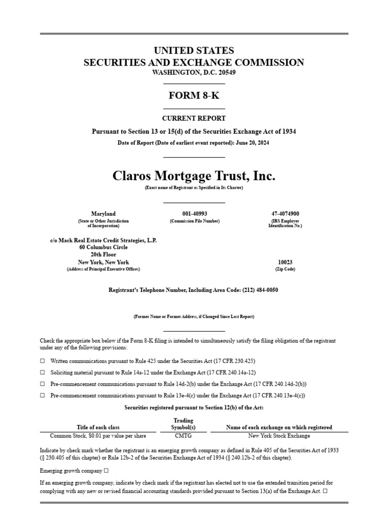 On June 20, 2024, CMTG JP Finance LLC, a subsidiary of Claros Mortgage Trust, Inc. (the “Company”), entered into Amendment