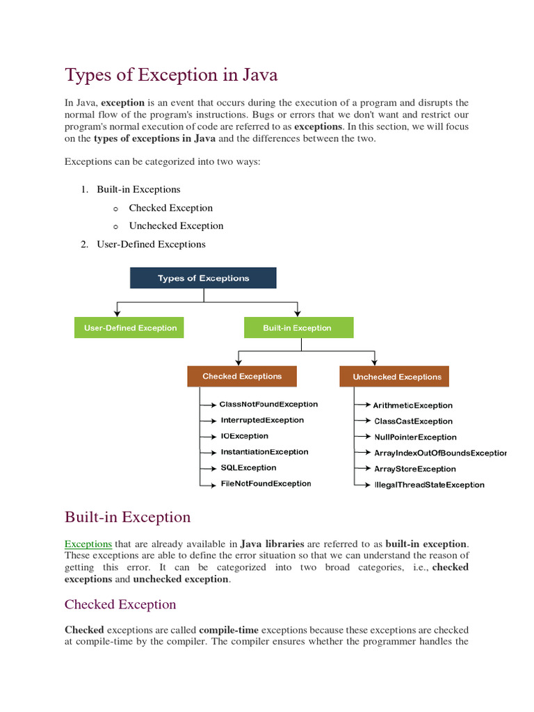 getting this error. It can be categorized into two broad categories, i.e., checked