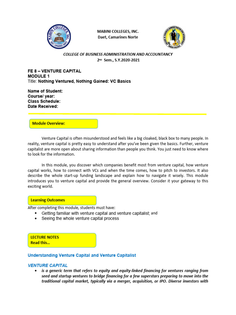 Title: Nothing Ventured, Nothing Gained: VC Basics