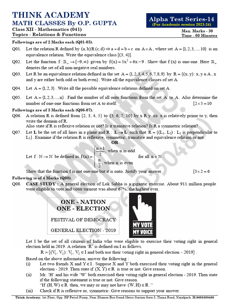 MATH CLASSES By O.P. GUPTA (For Academic session 2023-24)