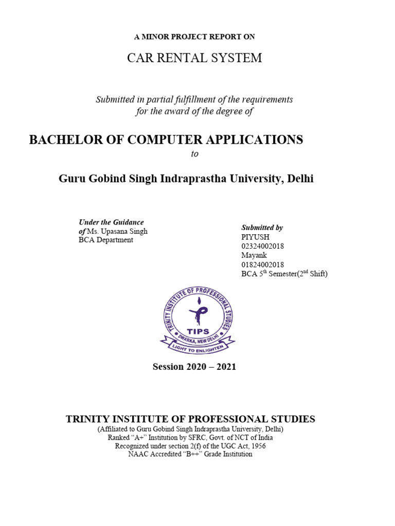 (BCA) to be awarded by G.G.S.I.P. University, Delhi by , Enrolment No.