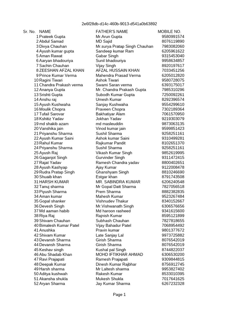 Sr. No. NAME FATHER'S NAME MOBILE NO.