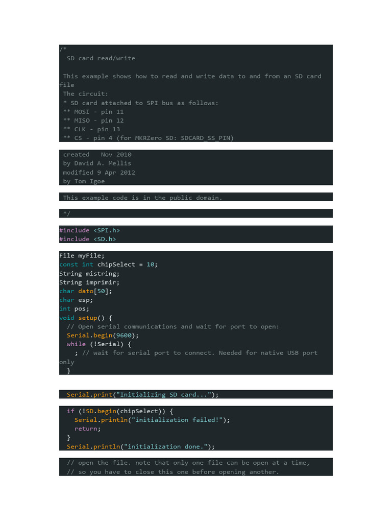 ** CS - pin 4 (for MKRZero SD: SDCARD_SS_PIN)
