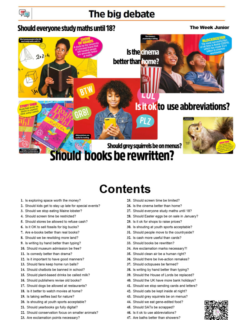 21. Should yearbooks go fully digital? 45. Should SATs be scrapped?