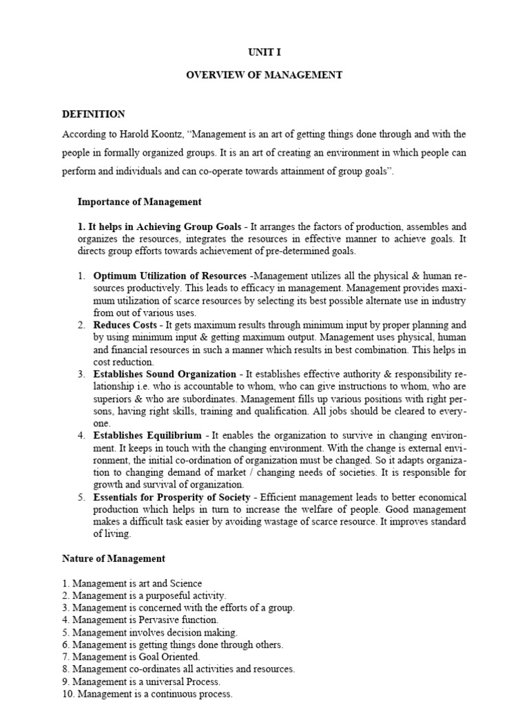 Unit I Management