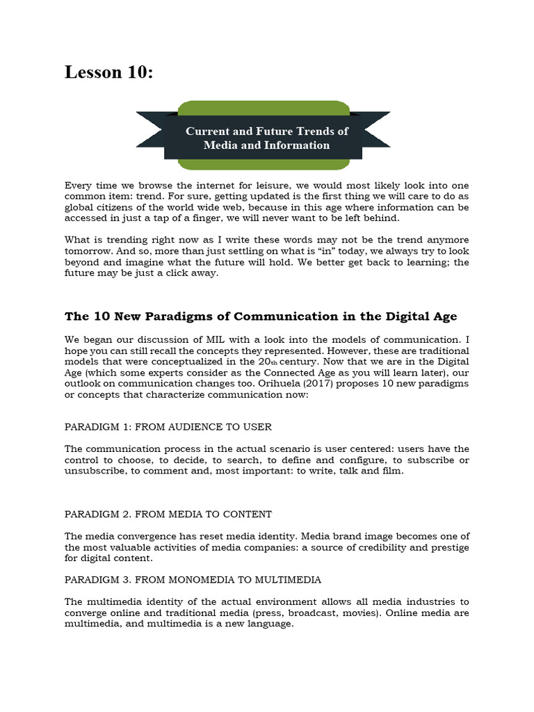 outlook on communication changes too. Orihuela (2017) proposes 10 new paradigms