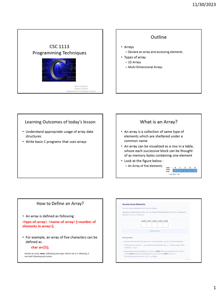 Programming Techniques – Declare an array and accessing elements