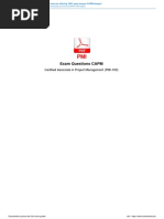 5. A dental plan Answer:C (35) Your customer ask for a small change in the project, which was not budgeted in the project. It is a small effort as compared to the total project and you n eed the goodwill for a multimillion dollar on the pipeline. You will 1. Refuse to do the work 2. Agree to do the work at no charge 3. Do the work and bill him later 4. Assess the cost and schedule impact and tell them you will decide later Answer:D (36) You are responsible for ensuring that your seller's performance meets contr actual requirements. For effective contract administration, you should: 1. Hold a bidders conference 2. Establish the appropriate contract type 3. Implement the contract change control system 4. Develop a statement of work Answer:C (37) The three major causes of change on a project are: 1. Replacement of the project manager or key project team members; changes in priorities by senior management; and contractual difficulties. 2. Changes in the relative importance of time, resources, or cost ; new kno wledge about the deliverable; and technological uncertainty 3. Errors in the initial assessment of how to achieve the goal of the proje ct; new information about the project deliverable; and a new mandate 4. Unavailability of resources promised by the functional managers; cost ov erruns; and changes in customer requirements Answer:C (38) The purpose of the review of deliverables and project performance at the co nclusion of a project phase is to: 1. Determine how many resources are required to complete the project accord ing to the project baseline 2. Adjust the schedule and cost baselines based on past performance 3. Obtain customer acceptance of project deliverables 4. Determine whether the project should continue to the next phase Answer:D (39) Your project is in the final test stage, the user acceptance test. It meets all the product specs and is under planned costs. In term of schedule, this pro ject is ahead. Your customer meet you and requested that he will not accept the product unless you make several changes. What you should do is: 1. Get the list of the changes and estimate all of them. If the total cost is still within the baseline, you just do it 2. Estimate the costs and send this to your customer requesting contract mo dification 3. Ask the customer to file a Change request 4. Sit with the customer to review the product specs and tell him/her that you have completed the project. Answer:C (40) The delphi Method is best suited for: 1. Decision-making 2. Cost Control 3. Overhead rate estimating 4. Team discussions Answer:A (41) Which of the following methods is least likely to be used for explaining pr oject planning guidelines to the team? 1. Project Office Memo 2. Project office directive 3. Project team meeting 4. Formal project report Answer:D