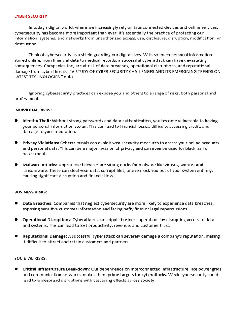 damage from cyber threats (“A STUDY OF CYBER SECURITY CHALLENGES AND ITS EMERGNING TRENDS ON