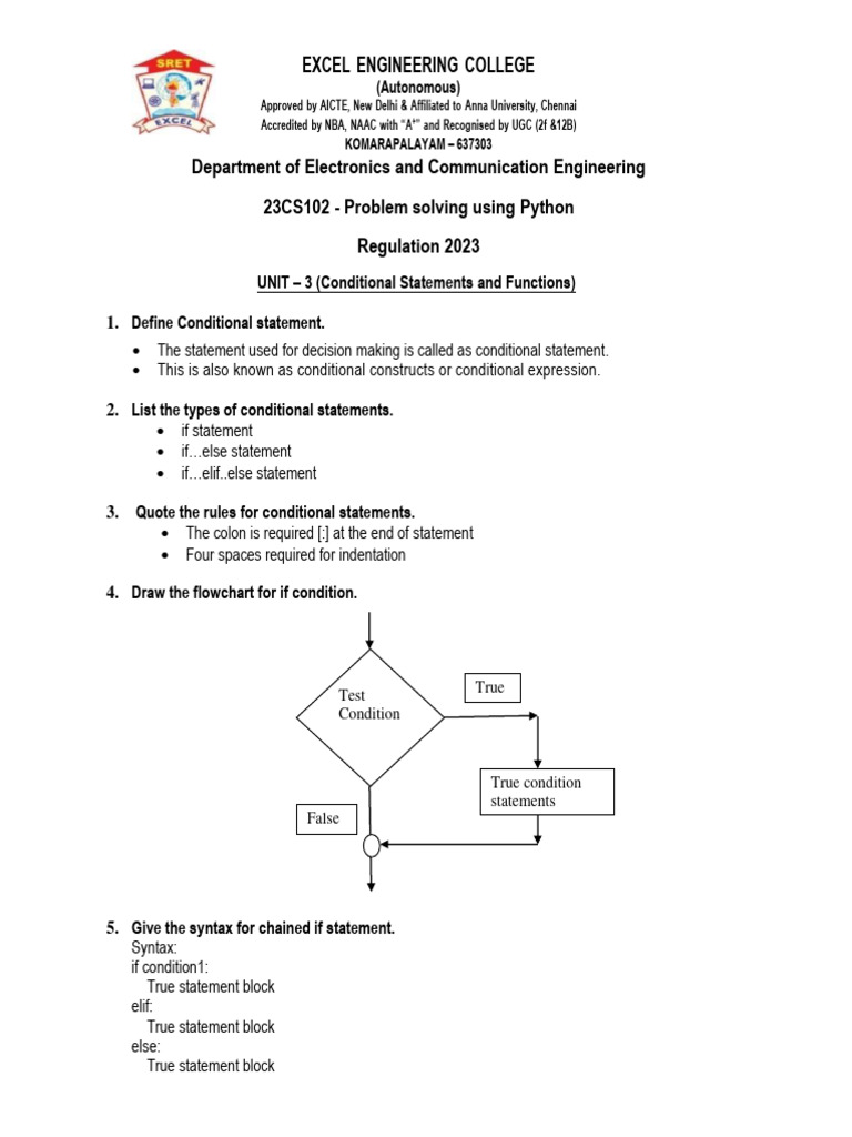 UNIT – 3 (Conditional Statements and Functions)
