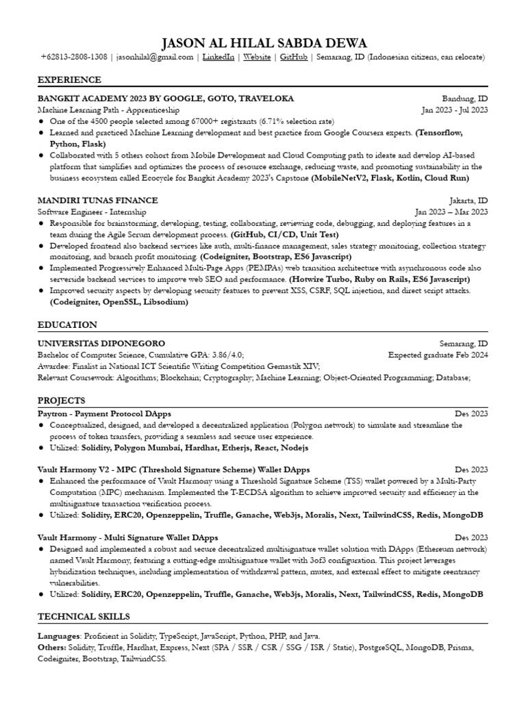 +62813-2808-1308 | jasonhilal@gmail.com | LinkedIn | Website | GitHub | Semarang, ID (Indonesian citizens, can relocate)