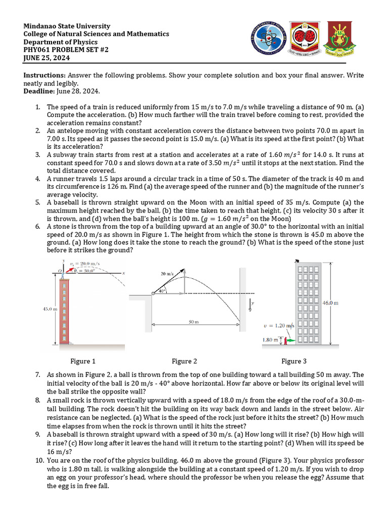 10. You are on the roof of the physics building, 46.0 m above the ground (Figure 3). Your physics professor