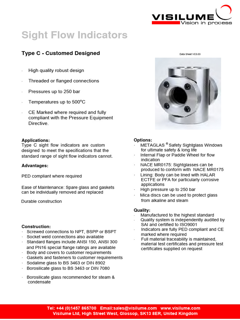 Type C sight flow indicators are custom · METAGLAS ® Safety Sightglass Windows
