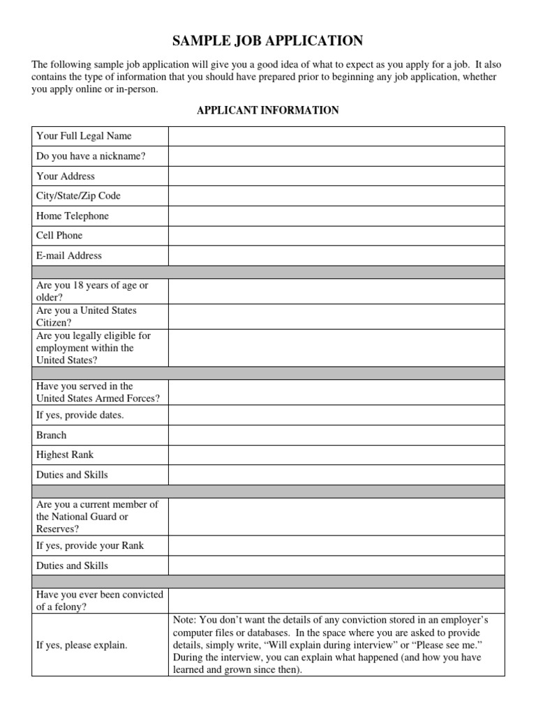 The following sample job application will give you a good idea of what to expect as you apply for a job. It also