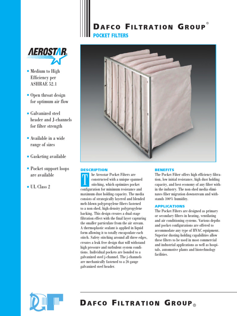 are available he Areostar Pocket Filters are The Pocket Filter offers high efficiency filtra-