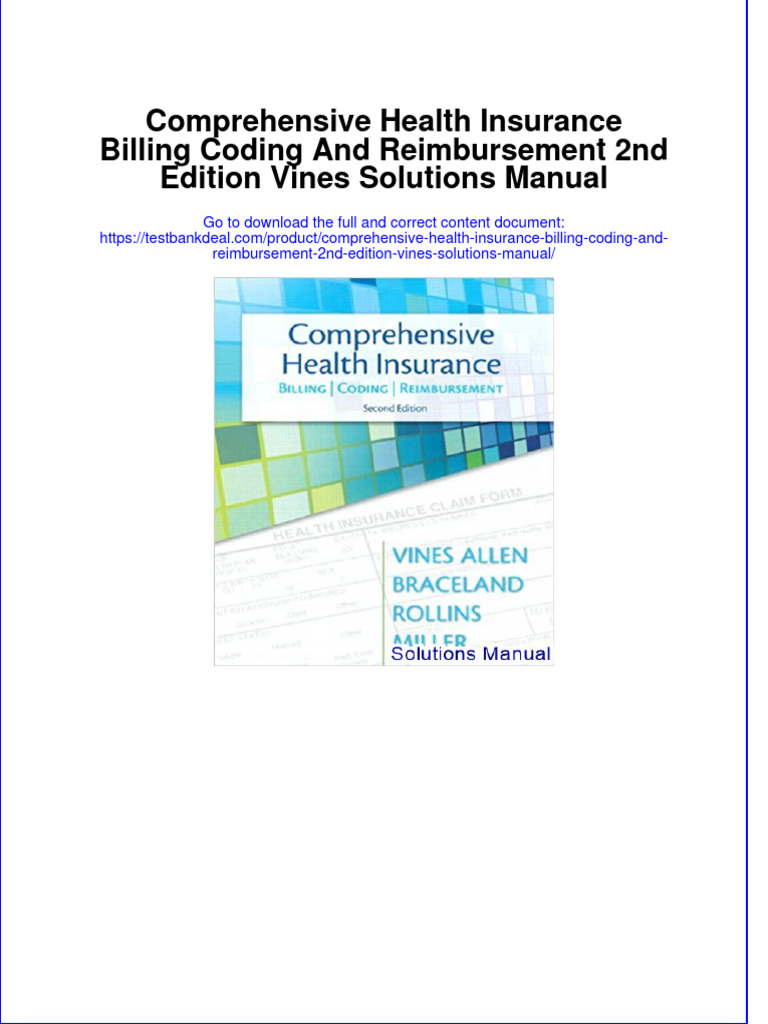 Comprehensive Health Insurance Billing Coding and Reimbursement 2nd Edition Vines Solutions Manual