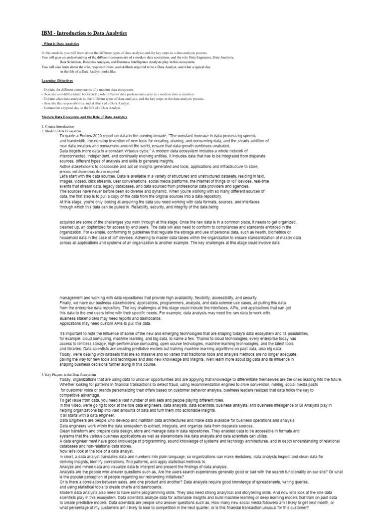 a data-driven decision maker or in any analytics enabled role. The course introduces you to the core concepts, processes, and tools you need to gain entry into data