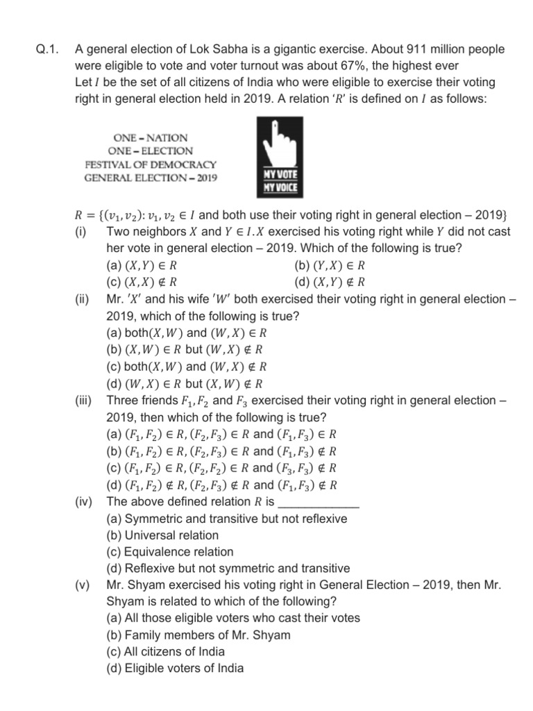 right in general election held in 2019. A relation ‘𝑅’ is defined on 𝐼 as follows: