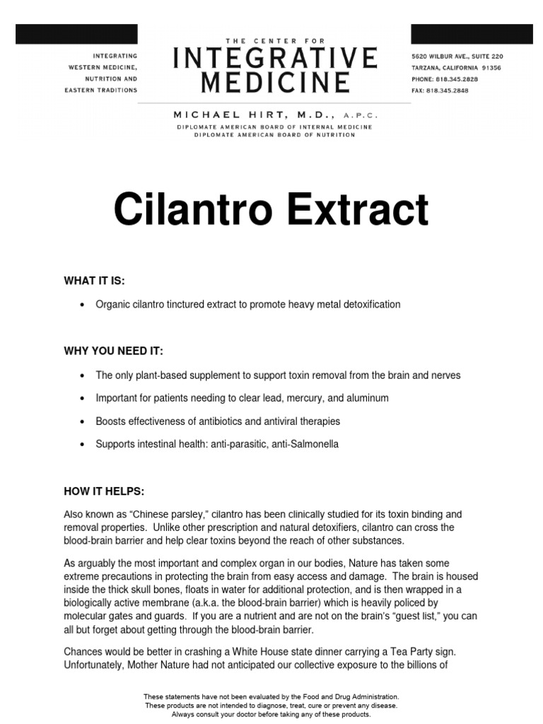 • Organic cilantro tinctured extract to promote heavy metal detoxification