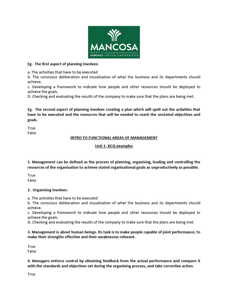 1. Management can be defined as the process of planning, organising, leading and controlling the