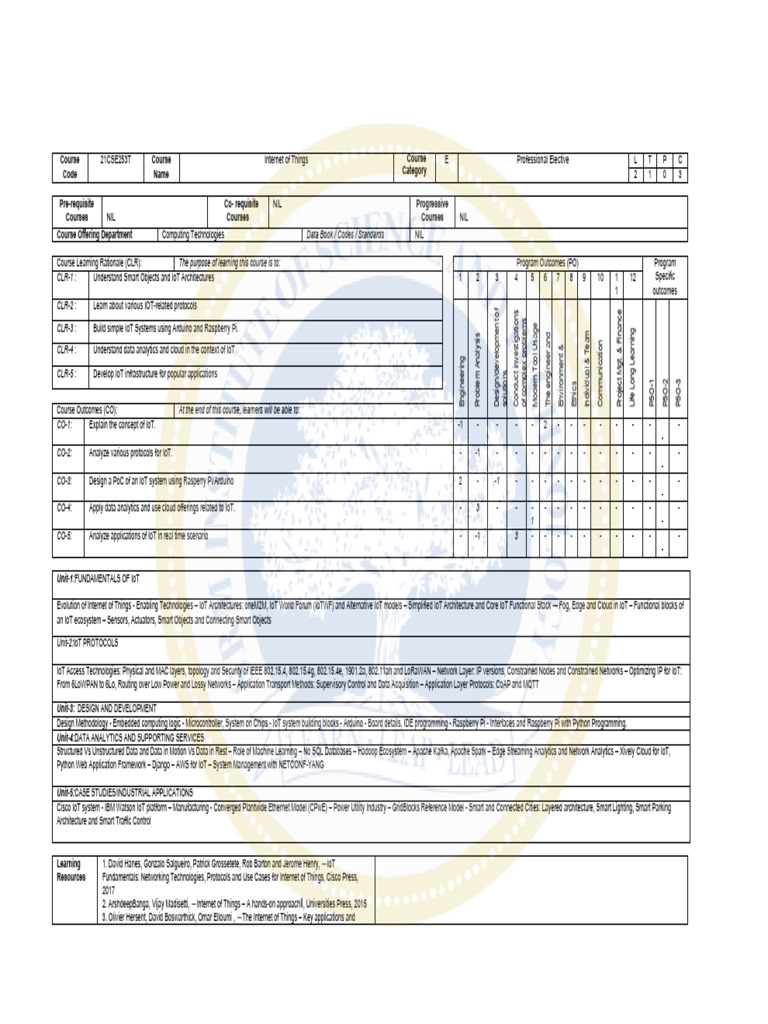 Course 21CSE253T Course Internet of Things Course E Professional Elective L T P C