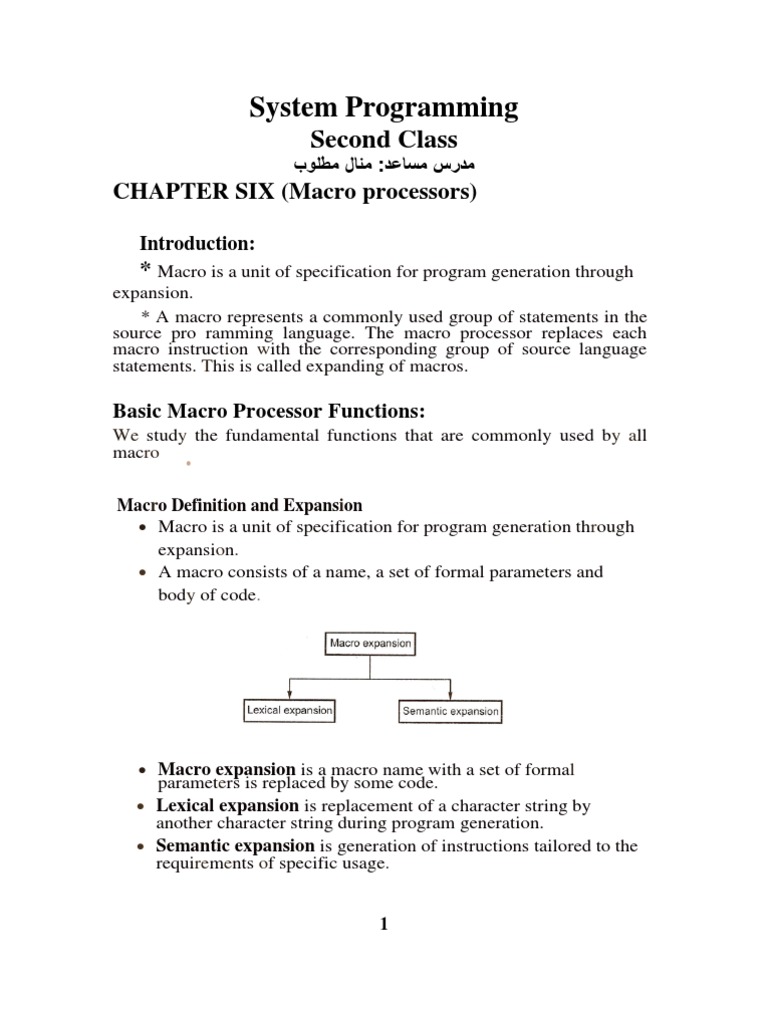 expansion. * A macro represents a commonly used group of statements in the source pro ramming language. The macro processor replaces each macro instruction with the corresponding group of source language statements. This is called expanding of macros.