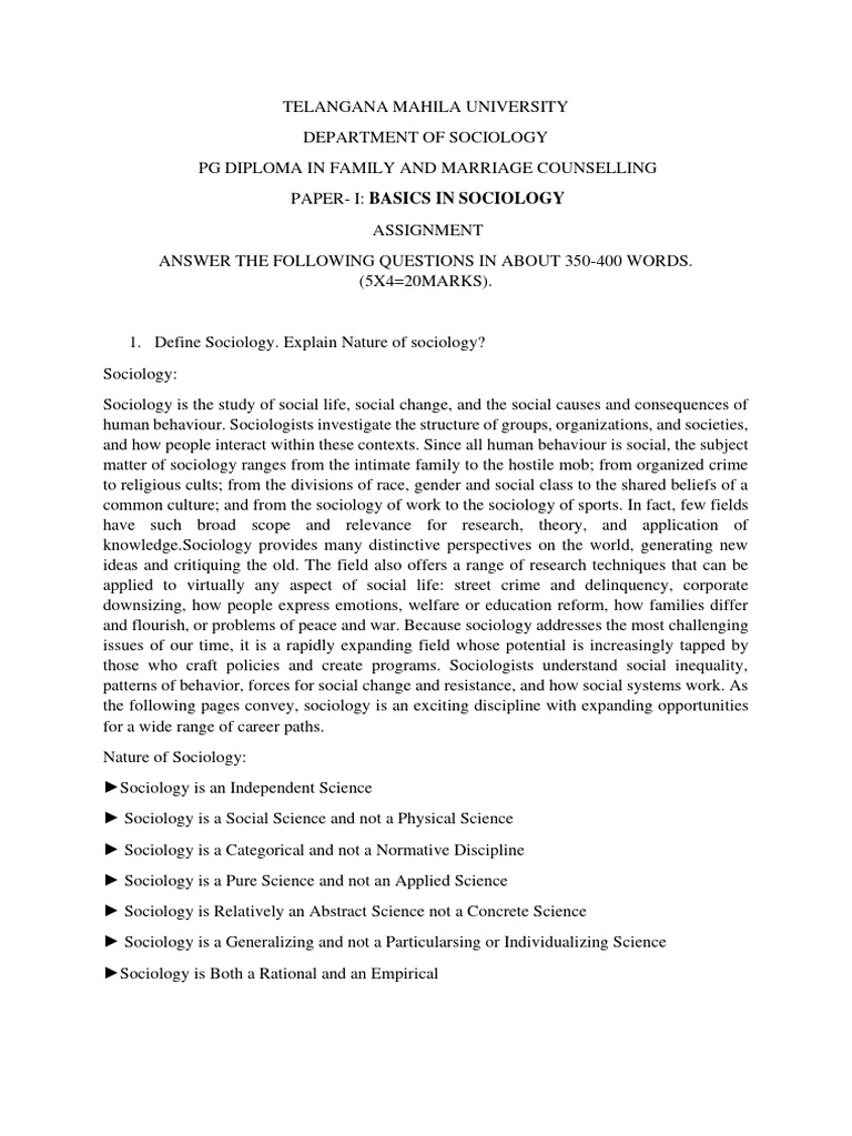 1. Define Sociology. Explain Nature of sociology?