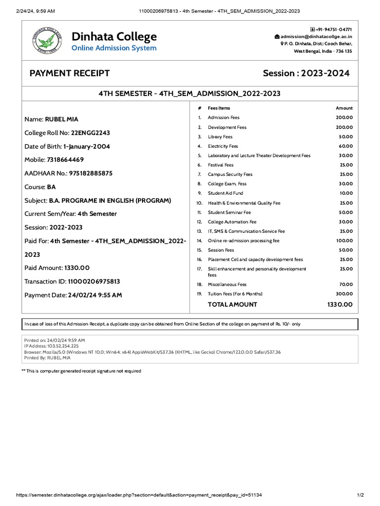 2/24/24, 9:59 AM 11000206975813 - 4th Semester - 4TH_SEM_ADMISSION_2022-2023