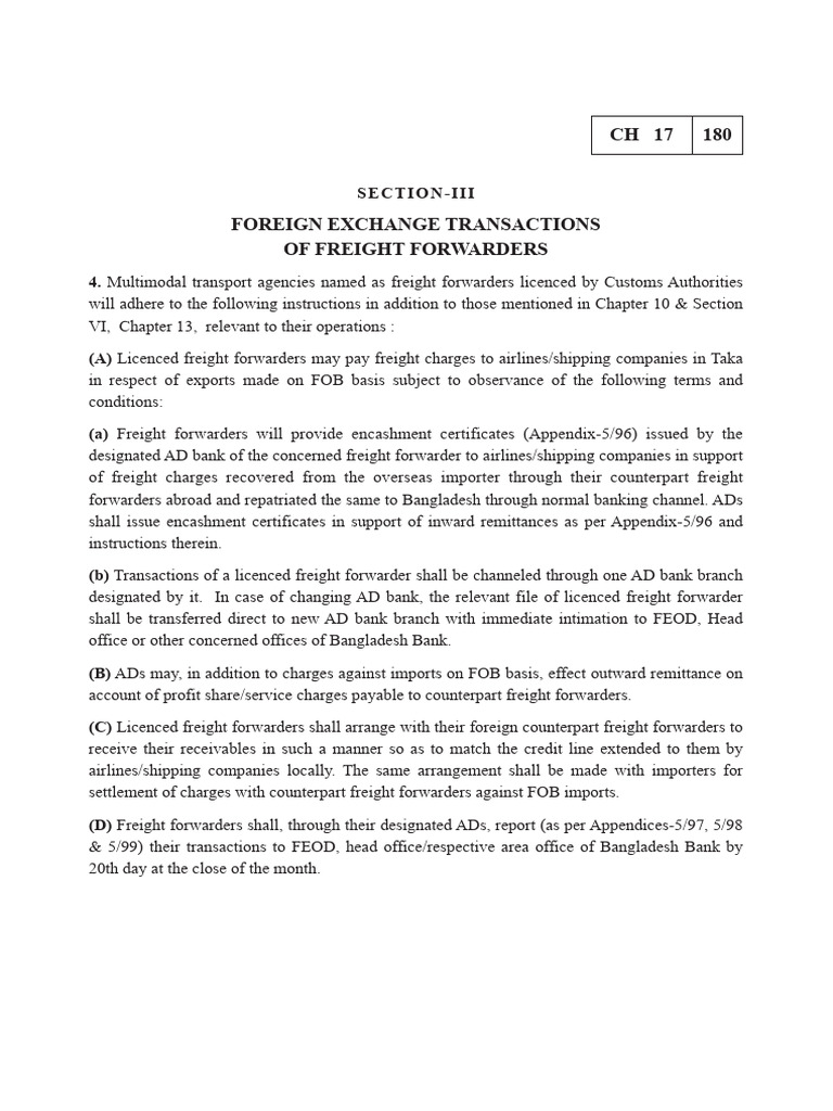(b) Transactions of a licenced freight forwarder shall be channeled through one AD bank branch