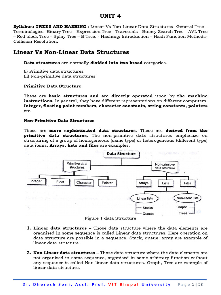 Syllabus: TREES AND HASHING : Linear Vs Non-Linear Data Structures -General Tree –