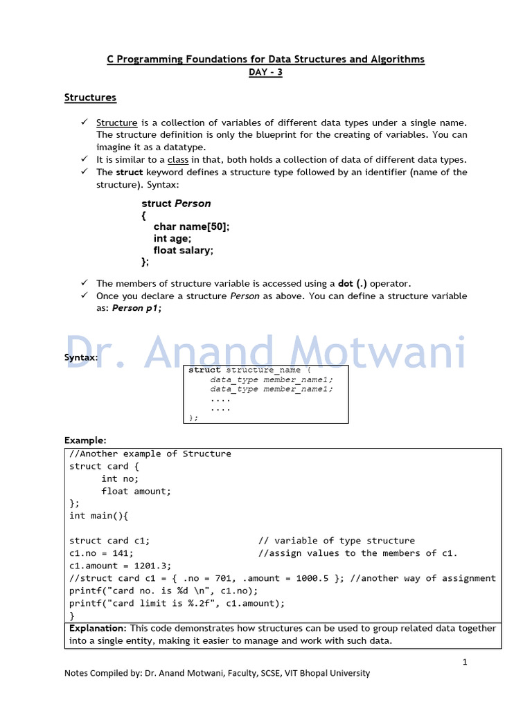Notes Compiled by: Dr. Anand Motwani, Faculty, SCSE, VIT Bhopal University