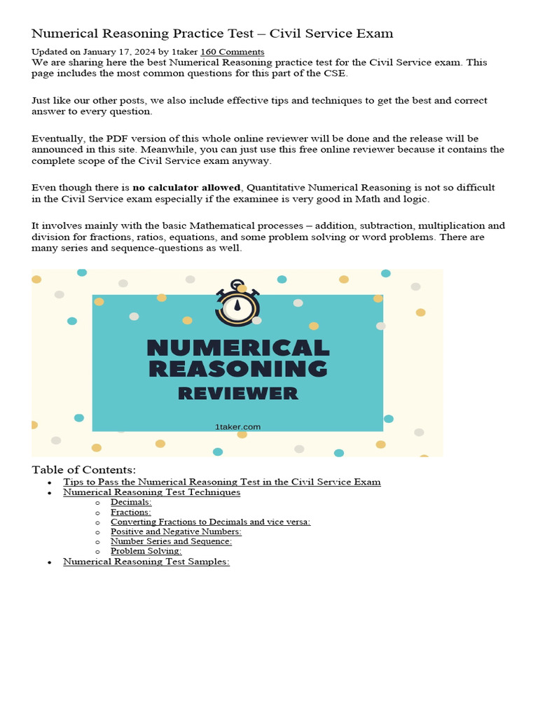 We are sharing here the best Numerical Reasoning practice test for the Civil Service exam. This