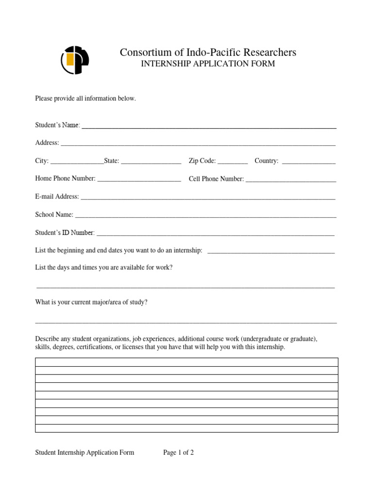 Student Internship Application Form Page 1 of 2
