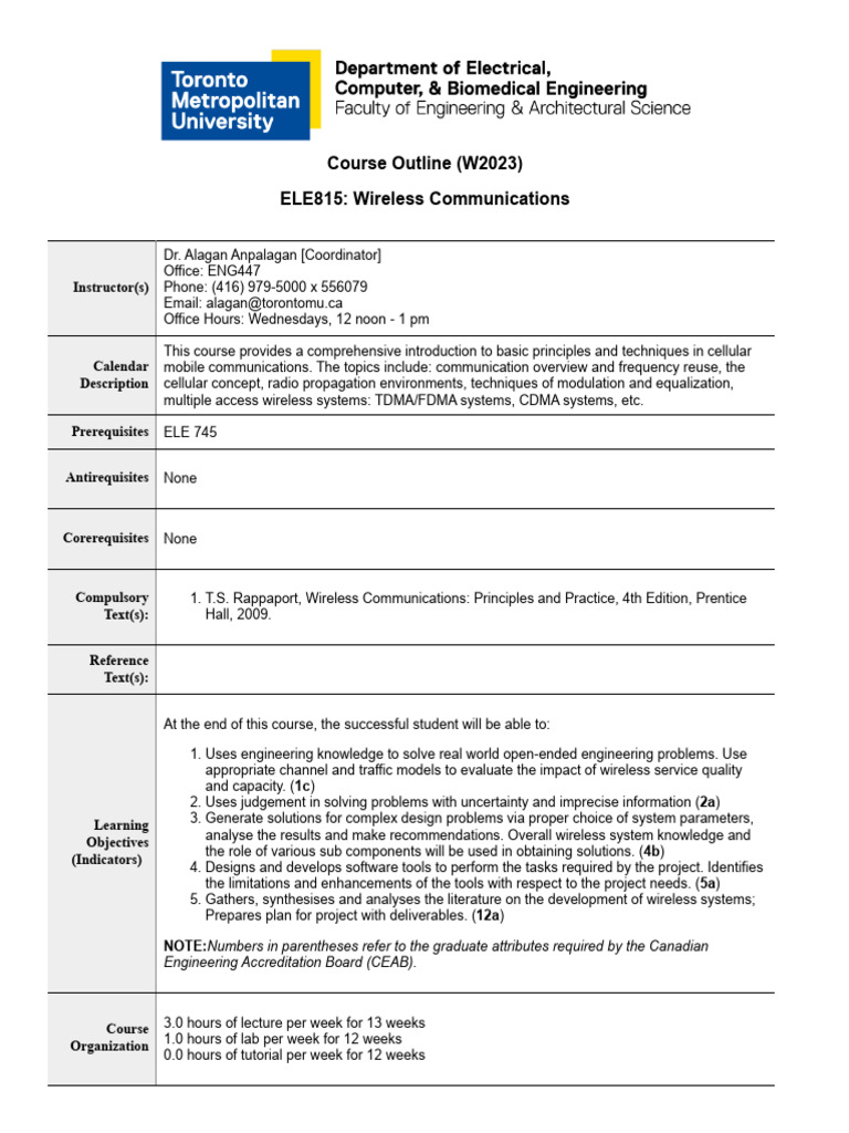 Instructor(s) Phone: (416) 979-5000 x 556079